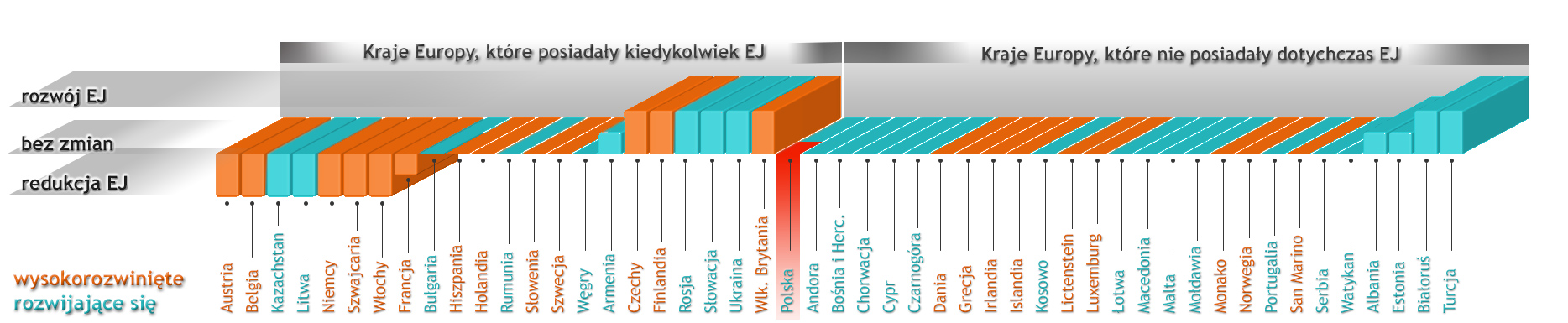 • jedynie Białoruś i Turcja (na razie na etapie umów) budują na swoim terytorium EJ