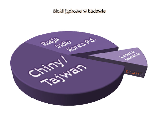 5. Na początku 2013 r. (styczeń) w budowie jest 68 nowych reaktorów, a tak na prawdę 59 (po odliczeniu 3 japońskich oraz 6 będących w budowie ponad 15 lat) z czego 53 w Chinach/Tajwanie, Rosji, Indiach i Korei Pd.